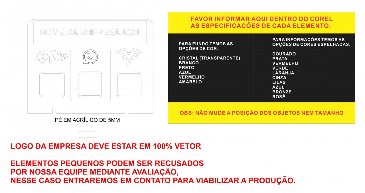 Feita em acrílico de alta qualidade, nossa placa PIX é resistente a impactos e possui excelente transparência (quando comprada na cor cristal), proporcionando um visual sofisticado e profissional.