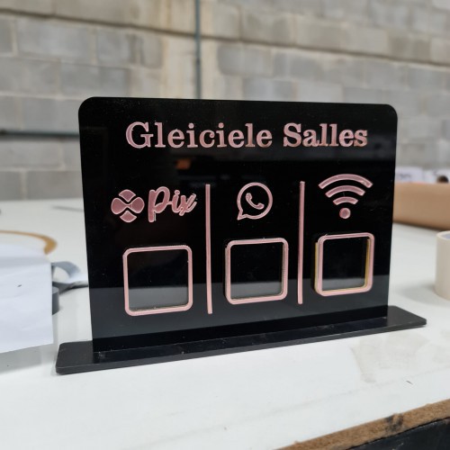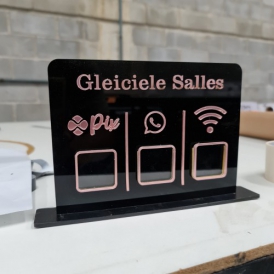 A placa PIX em acrílico é personalizável, permitindo que você adicione seu logotipo, informações de contato ou QR code, tornando-a exclusiva para o seu negócio. O QR code facilita ainda mais as transações, permitindo que seus clientes escaneiem e realizem pagamentos instantâneos usando o PIX.